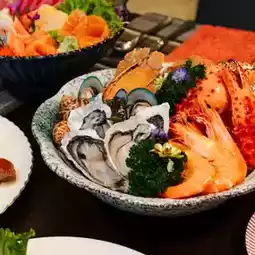 ✨Premium seafood on ice, such as Alaskan crab, Korean oysters