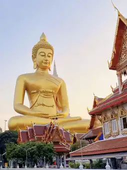 Stepping into Bangkok's Pratunam Temple feels like entering a timeless sanctuary. The solemn Buddha statue stands in the center of the main hall, with golden light streaming in from the windows, adding a touch of sacred warmth to the entire space. Inside the temple, devotees quietly kneel, hands clasped in prayer, reciting peaceful wishes, as if each word is filled with devotion and hope.