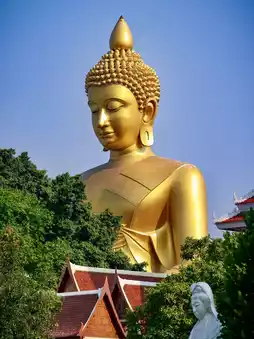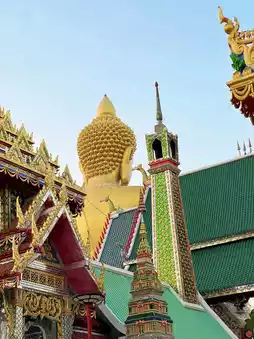 I strolled through the courtyard, admiring the intricately carved pagodas and the golden-edged eaves. Occasionally, a gentle breeze would bring the sound of bells, calming the mind. In one corner of the courtyard, a lotus pond reflected the blue sky, with blooming lotuses swaying gently, mirroring the illusion and reality of the world. At this moment, the bustling Bangkok seemed far away, leaving only tranquility and Zen in the heart.
