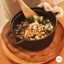 Japanese rice baked with juicy salmon. When you eat it, the aroma of sesame oil and salmon will come up. It's very delicious.