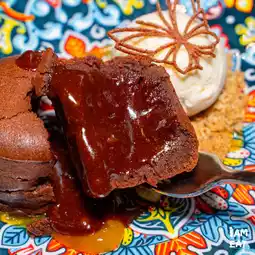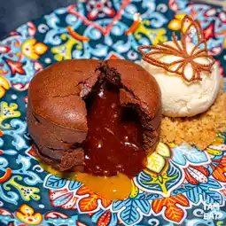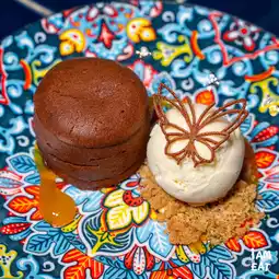 Finally, Valrhona Chocolate Passion Lava 350.- Chocolate lava cake, very delicious and rich. Served with passion fruit gel, coconut crumbs and vanilla ice cream. Eat them together and it's super delicious. You'll get the richness of chocolate lava, the sourness of passion fruit gel, and the richness of coconut crumbs.