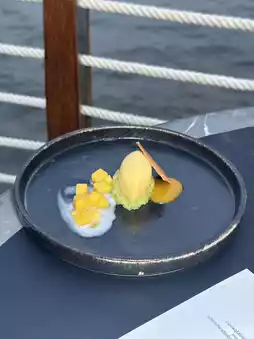 Passion fruit sorbet with honey jelly – Perfectly timed! Sitting on an open cruise in Thailand’s warm weather, this was a much-needed, cooling delight.