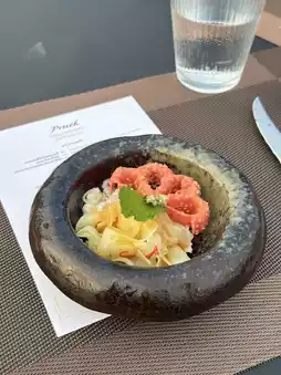 👉Coconut crème brûlée with sturgeon caviar – a surprising balance of sweetness and umami.