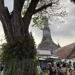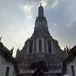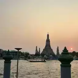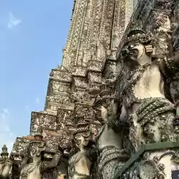 Wat Arun, also known as the Temple of Dawn, is one of Bangkok's famous royal temples. Located on the west bank of the Chao Phraya River in the Thonburi district, it is second in scale only to the Grand Palace and Wat Phra Kaew. The temple was originally built during the Ayutthaya period and was later named in honor of King Taksin, the 41st king of Thailand and a Chinese-Thai national hero. Its iconic structure is the 79-meter-high prang (tower) in the Brahmin style, adorned with colorful porcelain and glass, and is often referred to as the 'Eiffel Tower of Thailand' for its artistic value.