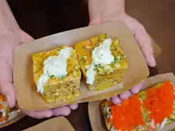 Fragrant garlic bread with a smooth and mellow taste. Soft bread in a square shape must be at Garic Kiew Barattong. But if you come here and eat ordinary garlic bread, it's not worth it. This garlic bread has a variety of toppings to choose from. The shop carefully selects and makes every menu fresh. The smell of baked bread