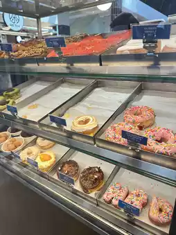 A cafe that mainly sells donuts, and also has coffee, tea, etc.