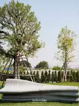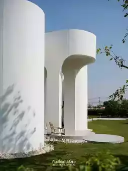 #NewYearNewTrip Curvy Dining, a newly opened cafe in the Krungthep Kreetha area, catches the eye with its unique curved white building design, interspersed with clear glass that lets in light from outside, making the shop look airy and spacious. It is also surrounded by green lawns, making it perfect for taking photos from every angle.