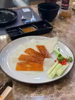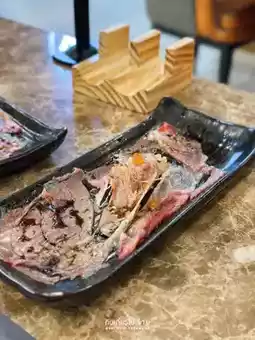 The impressive menu is the truffle mushroom soup, which is fragrant and rich, and various sushi such as salmon, beef, and rolls of various types. The quality is okay. The salmon sashimi is also good. Dipping with seafood is the best. There are also Chinese-style menus to choose from, such as crispy pork and duck skin, which are crispy and delicious.