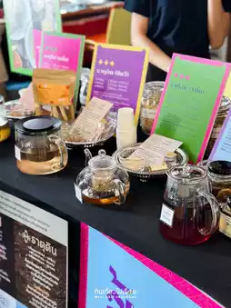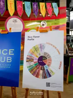In addition to tasting rice, there is also a zone of fermented rice water that lets us try smelling the rice, allowing us to better understand the complexity of rice flavors. This event also presents the Rice Flavor Wheel, a wheel that helps identify the flavors and aromas of each variety of Thai rice, similar to those used in the coffee and wine industries.