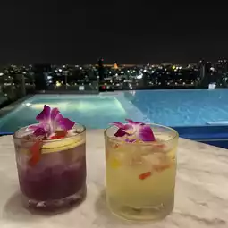 When we arrived, we were given a ticket that could be exchanged for a welcome drink, and we had a non-alcoholic cocktail on the rooftop 🍹