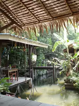 The cost of a shared boat is 100 baht per person, and the price of a chartered boat can be bargained with the boatman. My price that day was 600 baht, which included a floating market (BAAU SUAN BONUS)