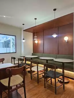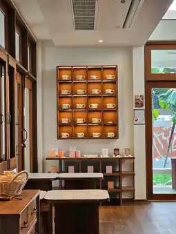The seating area inside the cafe includes both indoor and outdoor zones. It's very quiet and peaceful. In the morning, the light coming through the windows is perfect for taking photos. Highly recommend visiting in the morning.