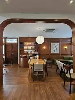 This cafe has been renovated from an old house, giving it a very homely atmosphere. Upon entering, you'll be greeted by the coffee counter, which fills the entire place with a delightful aroma. Every item on the menu looks delicious. Besides drinks, they also offer food.