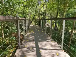 The learning center for the forest in the city, which PTT built, is not very big but is shady. There are places to sit and relax, a long wooden bridge that goes around to see a high angle view, and a spiral staircase to the highest point with a 360-degree view. It is considered well-made.