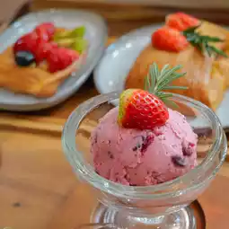 In terms of the atmosphere and decoration of the shop, it focuses on decorating with vintage furniture in warm tones. There is a large glass corner that allows natural light to enter, making the atmosphere inside airy and comfortable. While outside the shop, it is surrounded by a beautiful English-style garden with various trees and flowers, creating a refreshing and relaxing feeling.