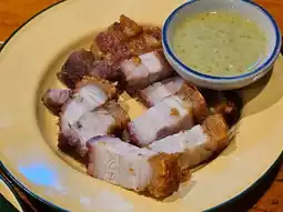 When it comes to crispy pork, trust the Crispy Pork Association of Thailand. For those who love eating crispy pork, this is the place. Turn left and it's crispy pork. Turn right and it's crispy pork.