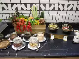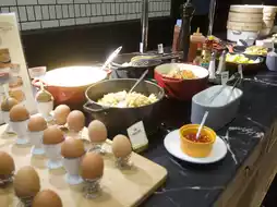 Breakfast is served on the first floor from 5:30 AM to 10:30 AM in a buffet style, with plenty of seating available. In addition to Thai cuisine, there are also options like bread and waffles.