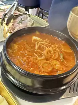 This is a popular menu in Korea right now. Served with side dishes and soup.