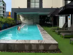 🏢 A lovely, warm-style hotel in the Sukhumvit area near BTS On Nut. The location is very good. The atmosphere inside the hotel is beautifully decorated with a touch of chicness and shadyness. The facilities are complete, including a spa, fitness center, restaurant, bar, and they also have an Onsen for you to soak in. There is also a shuttle service to the BTS. It can be said that they are fully equipped. In terms of rooms, there are various sizes to meet the needs of every stay.