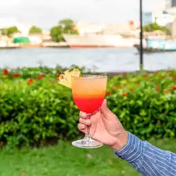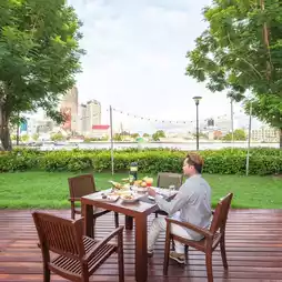 Riverside restaurant with a beautiful view, eat delicious dinner, see the beautiful river view