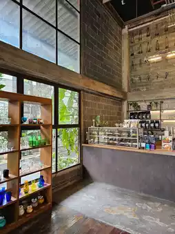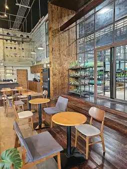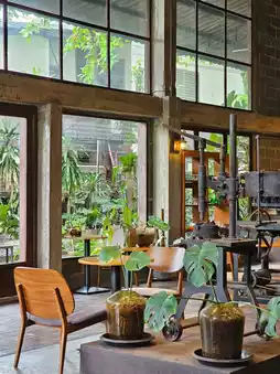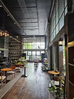 A cafe in Bang Khae area hidden in a 70-year-old glass factory, which the younger generation has renovated. It still has the atmosphere of the factory. It is decorated with glassware that is produced piece by piece in the factory. There are also many types of dishes, bowls, and glasses for you to choose and take home. There are many types, such as plates, bowls, and glasses, all beautifully colored.