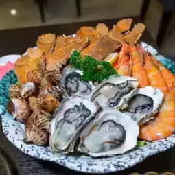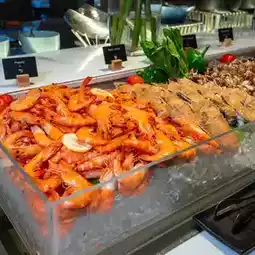 This is a premium dinner buffet, especially seafood, shrimp, lobster, Korean oysters served on ice, river shrimp, grilled seafood is also available. Steak lovers must not miss it. There is Australian sirloin, alternating with sashimi, sushi, very delicious. There are also many food stalls. Enjoy Thai desserts very much.