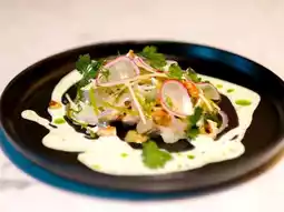 🐟Hamachi Crudo Hamachi fish, cooked just right, eaten with pomelo and the shop's special sauce.