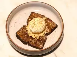 Soft and juicy inside, eat with bacon-flavored ice cream, sprinkled with crispy, salty bacon bits