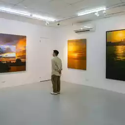The artist reinterprets his old works, replacing the peaceful nature views with symbols that reflect political and social changes. The dots, stripes, and abstract elements added to the images are not just artistic tools, but symbolic language that speaks of the power structure, silence, and hidden truths, like an artistic code that reflects political issues. This exhibition is therefore like a representation of contemporary Thai society, where people are gradually awakening and moving beyond political naivete to a deeper understanding of the problems of power structures and oppression.
