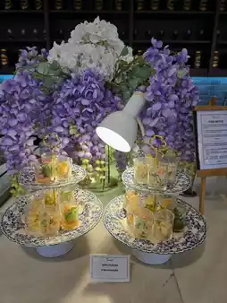 ðReasons for: Hot food service, a variety of food menus, in the morning, breakfast is served, Thai style, Western style, various salads, various soups, breads and croissants, chicken rice, chicken ham, scrambled eggs, macaroni with sauce, spaghetti with various sauces, a variety of drinks, with a bartender making them. There are also draft beers, champagne, sparkling white wine, red wine. There are also health drinks, various tea selections that are sold with good quality. Take soft drinks, fresh fruits, Thai desserts and various bakery products.