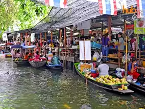 Khlong Bang Luang Floating Market is a charming and less touristy market in Bangkok, offering a glimpse into traditional Thai canal-side life. Visitors can enjoy delicious local food, handmade crafts, and cultural performances while exploring the peaceful waterways. The market’s relaxed atmosphere, combined with historic wooden houses and art galleries, makes it a great spot for a leisurely visit away from the city’s hustle and bustle. Perfect for those looking for an authentic and cultural experience in Bangkok!