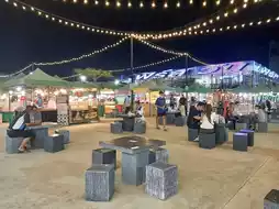 It is a large night market in the Talat Phlu area of Bangkok. It has a large area and parking for several cars at the back. The project has many shops and restaurants, divided into a fashion zone and a food zone. You can buy food at the stalls and then sit and eat at the tables in the common area. There is a beer garden, an activity area, and live music shows.
