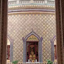 The chapel is in Thai art, but the interior is Western. It houses the Phra Phuttha Angkhirot, which is entirely gold. Under the base of the altar is the place where the royal remains of King Rama VII are enshrined.