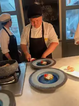Chef Pom Phatchara has been the rising star in Bangkok’s dining scene. Seafood is the star of the show in Thai cuisine and it is certainly so at Chef Pom Phatchara’s kitchen. Chef Pom Phatchara greeted us thirteen times with her creative dishes. As far as fine dining goes, she has delivered each of these dishes with brilliance and perfection. She was brilliant with the way that she used traditional ingredients in creative new forms. Our dishes featured an incredible array of cooking techniques that brought forth the very best of the ingredients chosen.