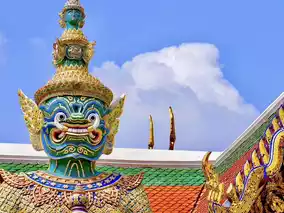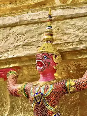 Step into a world where architecture tells stories. Bangkok’s Grand Palace dazzles with Wat Phra Kaew’s golden spires and the sacred Pillar Shrine (San Lak Mueang), its tiered roof glowing with intricate carvings—a spiritual anchor for the kingdom. Outside, Buddhist guardian demons snarl in stone, their fierce expressions and ornate details a testament to the artisans who carved them centuries ago.