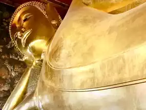 Just a short stroll away, Wat Pho beckons with its legendary Reclining Buddha—a 46-meter marvel lying serenely on its side, its mother-of-pearl feet shimmering and tranquil face radiating calm.