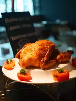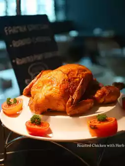 Whole chicken baked with herbs, soft, perfectly flavored.
