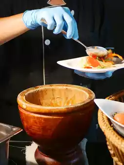 There are many dishes to choose from. Both snacks, hot dishes that the chef makes dish by dish, Somtam, Tom Yum Noodles, Khao Soi, Northern Larb, salad bar, fruits, desserts, ice cream and many other menus that rotate without repeating each time. 🍰🍓