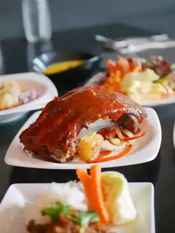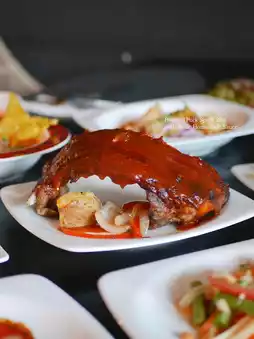 Pork spare ribs baked in a secret homemade sauce, extremely fragrant and rich.