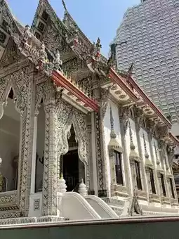 Wat Phra That Wat was built in 1797 and was awarded the Royal Wisongkham Order in 1848. This white temple building sparkles in the sun and is really hard to ignore! The temple is surrounded by a large canal called "Khlong Silom", hence the name Khlong Silom. The canal has now become Silom Road, and the name of Wat Suan Phu comes from the local Chinese who make a living by growing betel nuts. The historical background makes me even more fascinated by this temple! 🌿🙌