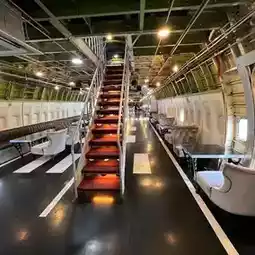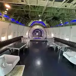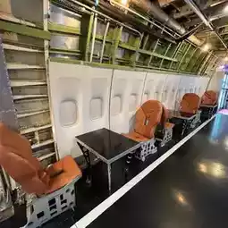 A retired Boeing 747 jumbo jet operates as a cafe, and is popular as a photogenic spot.