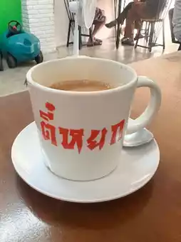 😊 Teeyok Coffee, Branch 2 is located in Soi Thung Mangkorn 7. It is a very popular breakfast restaurant in that area. With a friendly atmosphere, there are seats to choose from both inside and outside the shop. There are many menus to choose from, including traditional coffee, iced tea, toast, soft-boiled eggs, and pork stew. The food tastes delicious and the price is not expensive, making this shop popular with people of all ages. In particular, the must-try menu items are toast with custard, iced traditional coffee, and fried eggs. If you pass by this area, I highly recommend it.