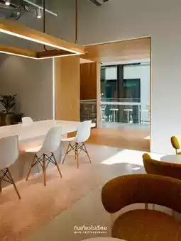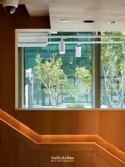 For those who want to sit for a long time, you can go upstairs. What is special is that they have a mezzanine. If you go in the morning, the light reflects beautifully. The 2nd floor is spacious and can accommodate many customers. If you come alone, there are single chairs to sit on. This area is a seat by the glass, overlooking the green garden of One Bangkok Park. Or if you come as a couple or a group, there is a zone with large tables and comfortable chairs. You can chat with friends during a chill time or come to sit and talk about work, which is equally good.