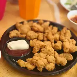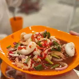 Moo Kratha lovers can't miss this! This restaurant offers a lot of soft marinated pork, bouncy shrimp, fresh seafood, and a special Korat-style dipping sauce. It's so spicy 🔥 The charcoal stove smells great, grilling and enjoying the atmosphere is friendly. You'll definitely want more for this meal!