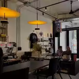 🖤🎶 A super cool coffee shop with a super chill vibe. The shop is like a semi-open-air and has a cool playlist playing in the background.