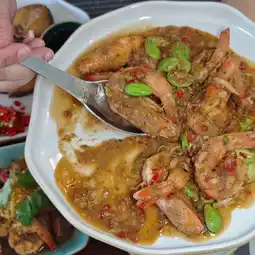 🔸Sour curry with shrimp, eggs, acacia shoots, mixed vegetables, big shrimp, acacia shoots, the more it stands out in the sour curry, the more delicious it is