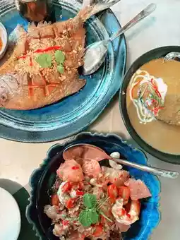 ✨ The shop's menu focuses on southern food with strong flavors, such as stir-fried shrimp with stink beans, crab curry with betel leaves, and stir-fried morning glory with eggs. Some dishes may have a strong southern flavor, but you can specify the level of spiciness. There are also a variety of drinks and desserts.