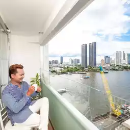ที่มาพร้อมระเบียงห้องที่มองเห็นวิวแม่น้ำเจ้าพระยาแบบไม่มีอะไรมาบัง