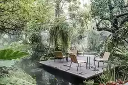 💦💓 The cafe area stands out with its glass house structure, giving it an airy and comfortable atmosphere, decorated with brass chandeliers designed in the shape of fighting fish. Inside this area, there are many chill-out corners to choose from and a counter bar ready to serve a menu of contemporary Thai desserts and many special drinks for you to choose from.