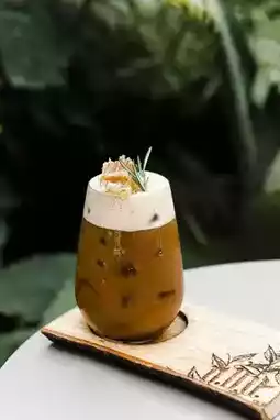 👉☕️ Robusta coffee menu that gives a unique richness, combined with honey, giving a rich, sour and sweet taste with a hint of sweet vanilla, before being topped with honeycomb to decorate the glass to make it look more inviting.